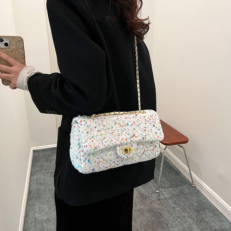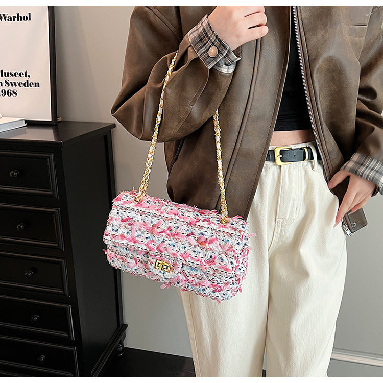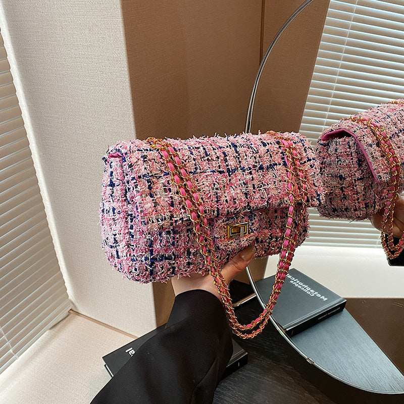 Introducing the Trendy All-match Shoulder Messenger Bag, the perfect blend of style and functionality. This bag is designed for those who want to make a statement while keeping their essentials organized. Crafted from soft, durable woolen material, this bag not only looks great but is built to last. With its horizontal square shape, it offers a unique aesthetic that will complement any outfit.