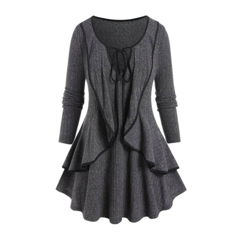 Introducing our stylish and versatile V-neck Lace-up Ruffled Temperament Commute Casual Long-sleeved Top, the perfect addition to your wardrobe for both casual outings and professional environments. Designed with comfort and elegance in mind, this top features a unique lace-up design that adds a touch of flair to any outfit. The V-neckline enhances your silhouette, giving you a chic and sophisticated appearance.
