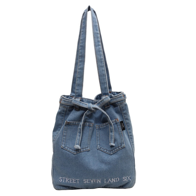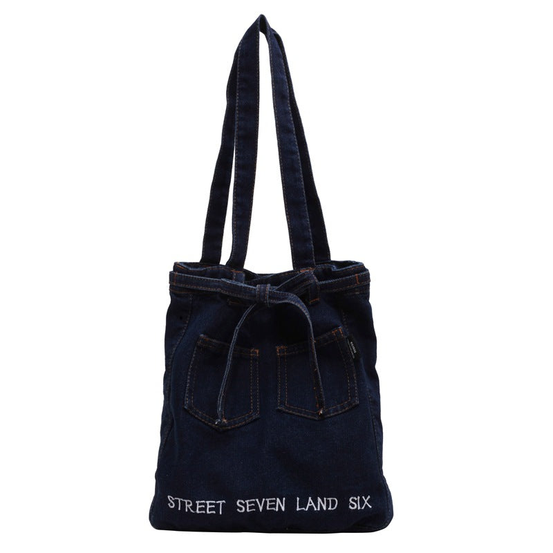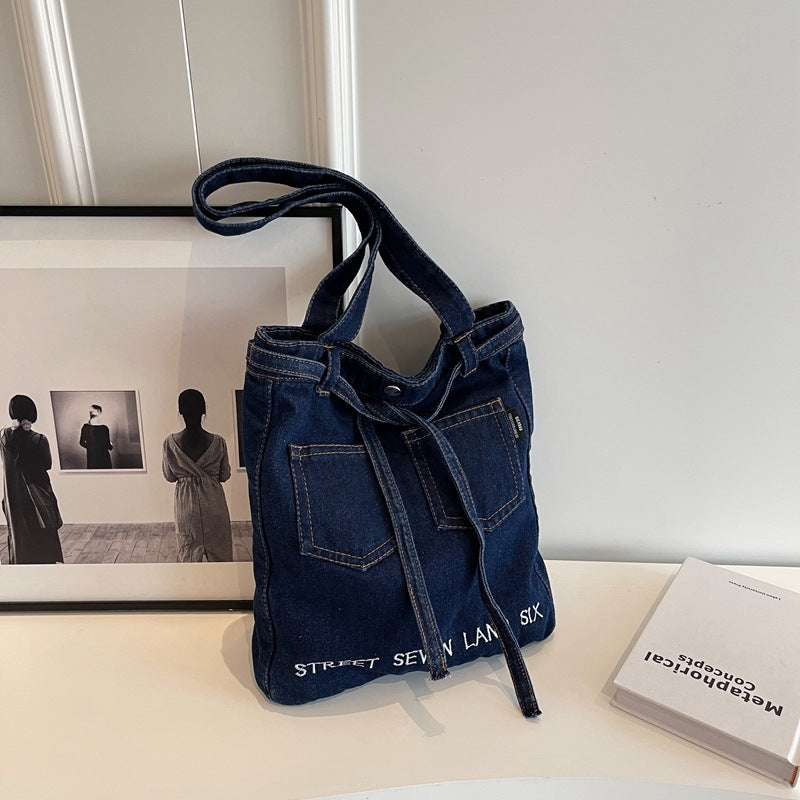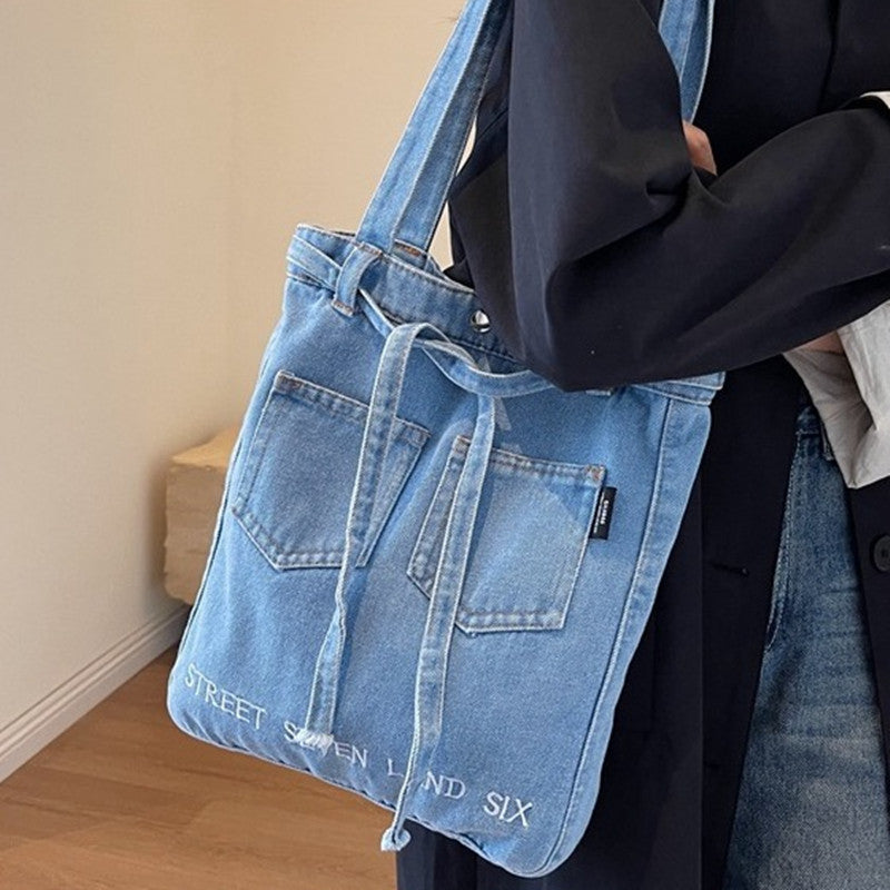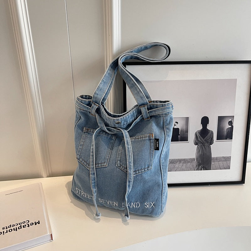 Washed Soft Denim Bag Letter Embroidery