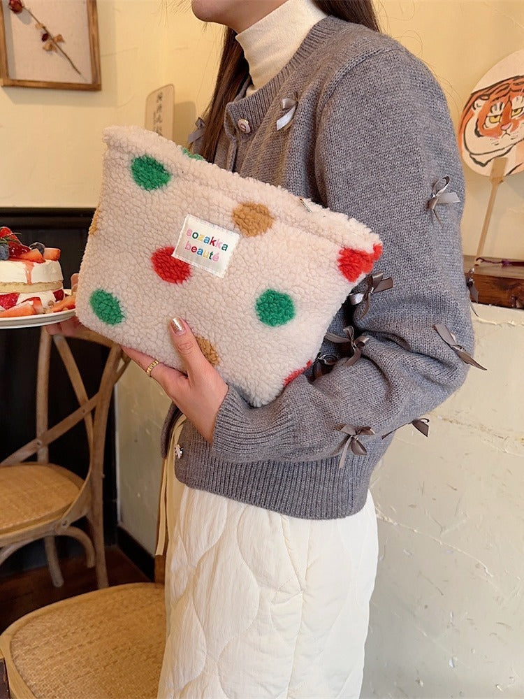 Winter Plush Polka Dot Travel Cosmetic Storage Bag