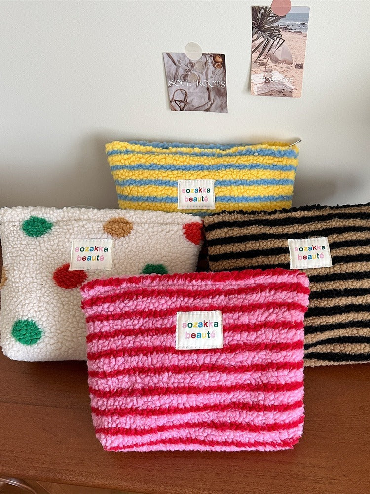 With a versatile design, the Winter Plush Polka Dot Travel Cosmetic Storage Bag is perfect for everyday use and special occasions. It provides ample space for all your favorite beauty products, making organization a breeze. Its fun designs and colors, including color polka dot, yellow strip, vermicelli, and brown stripe, are sure to suit any style.