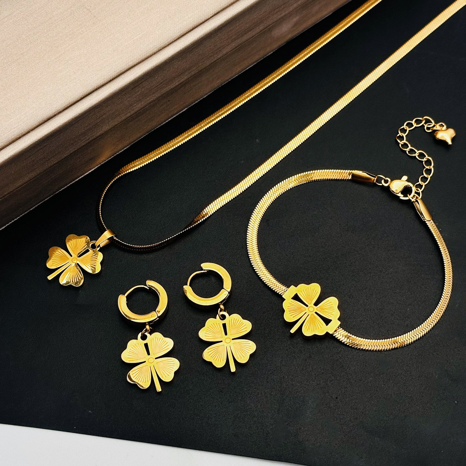 The treatment process of electroplating gives each item a rich, golden finish that sparkles in every light. Available in a delightful four-leaf clover motif, this set symbolizes good luck and positivity, making it a thoughtful gift for a loved one or a delightful treat for yourself.