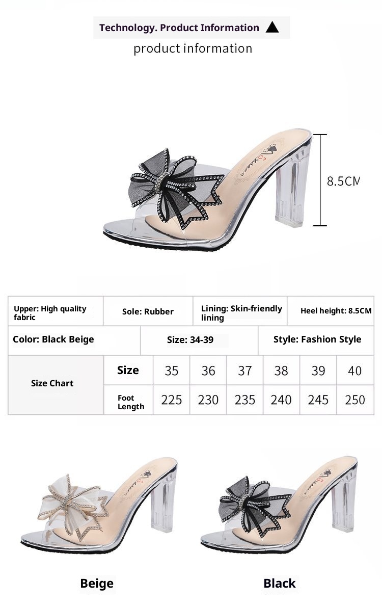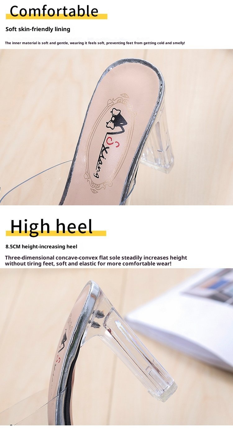 Women's Outdoor Chunky Heel Summer High Heel Transparent Slippers
