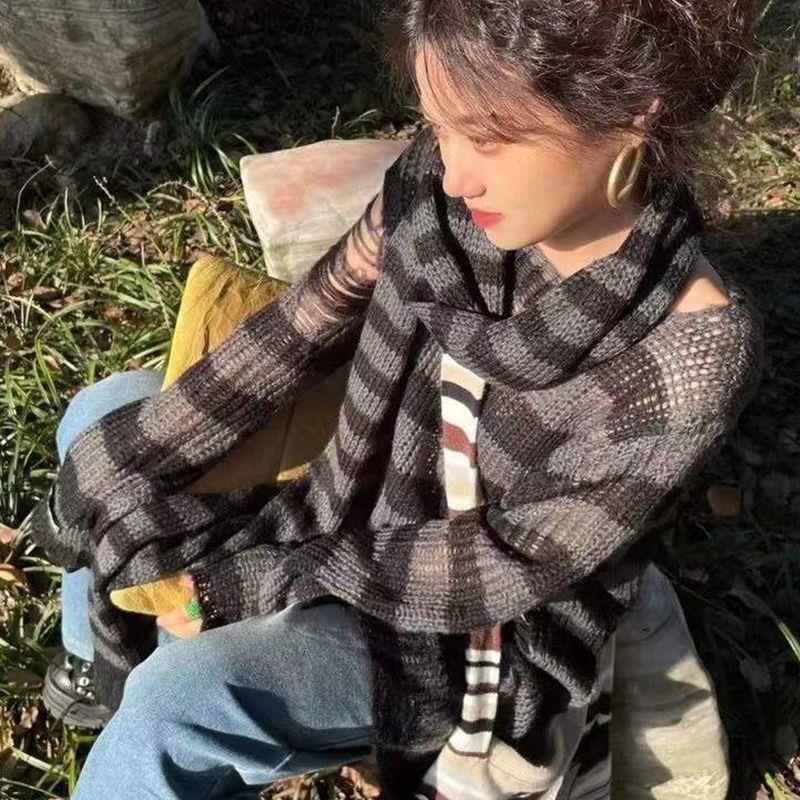 Yabi Style Punk Y2G Black Red Striped Extra Long Wool Scarf