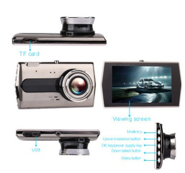 Zinc alloy driving recorder HD night vision Dual-lens double-record 4 inch 1080P reversing image